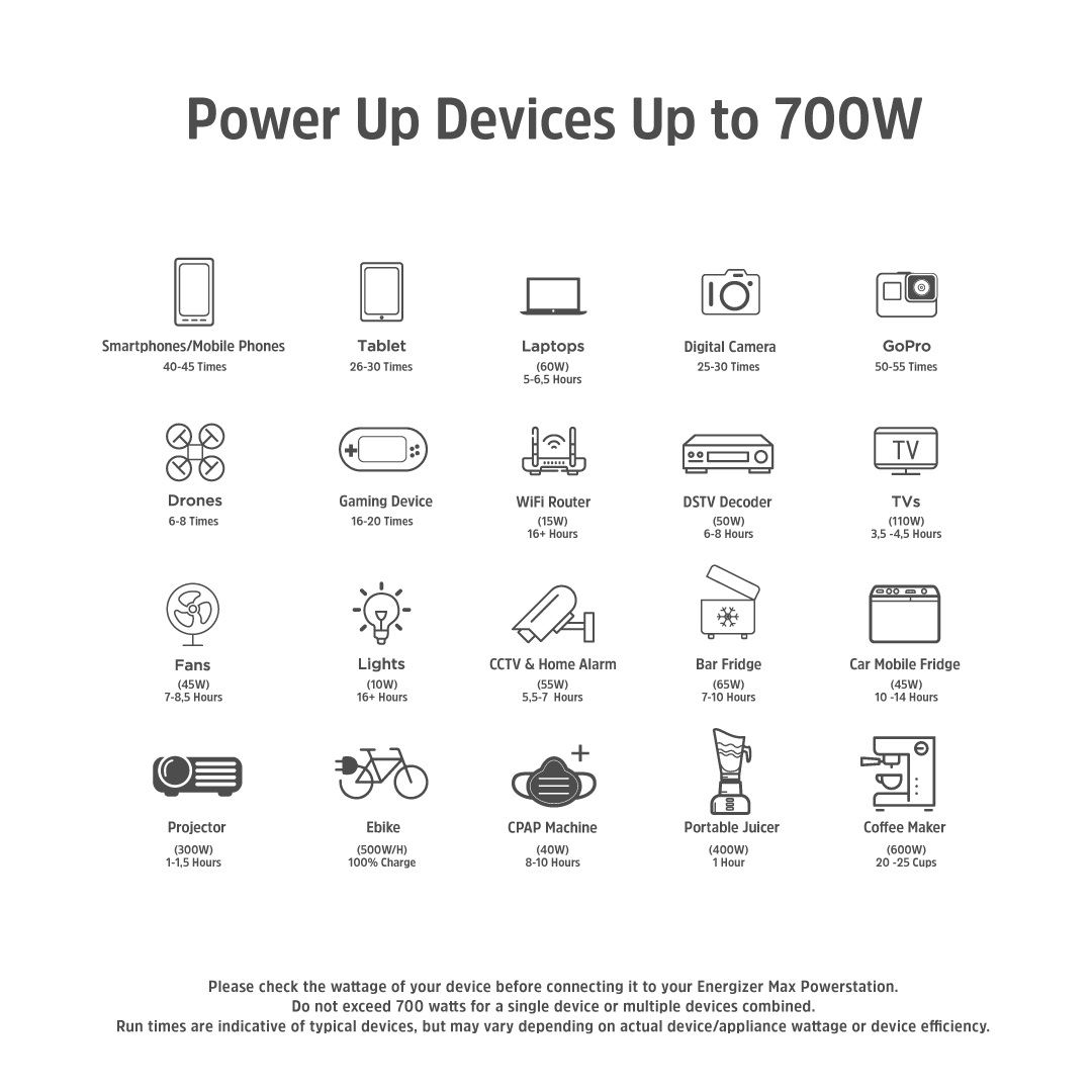 The Energizer Max Powerstation features built-in BMS controlled by a smart power control processor and excellent safety technology including overcharge, over-discharge, over current, overpower, over temperature, and short circuit protection. Comparted with traditional Lithium-Ion battery technology, this power station’s advanced high temperature and short circuit protection are some of the most stable and safe battery management technologies ever created. Using the latest heat-control technology, this portable power station sports best-in-class heat dissipation – the ultimate upgrade from traditional cooling fan designs.